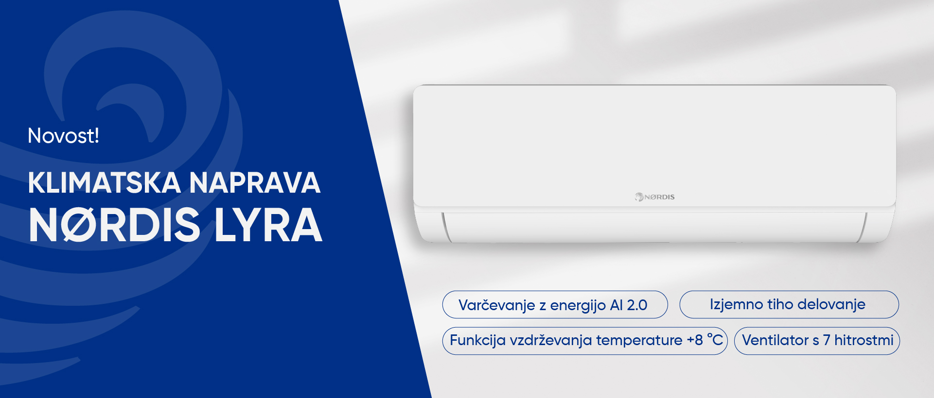 NORDIS Lyra je moderna toplotna črpalka zrak–zrak vrhunskega razreda, zasnovana za celoleten udoben bivalni občutek.