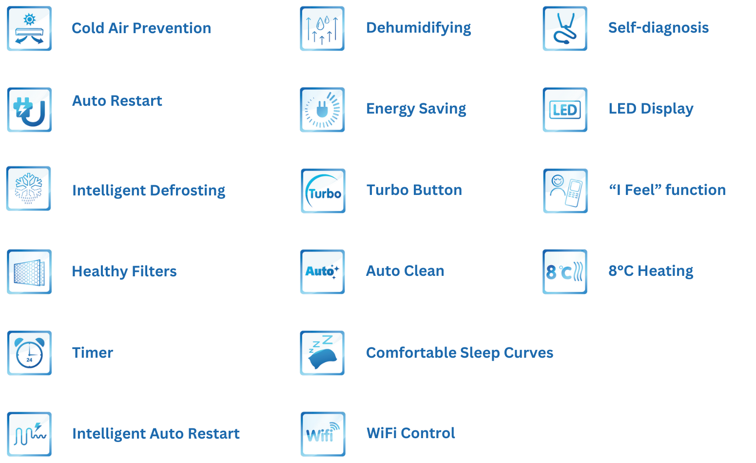 - Modul Wi-Fi za upravljanje klimatske naprave prek pametnega telefona (podpira sisteme Android/iOS in Amazon Alexa/Google speaker).