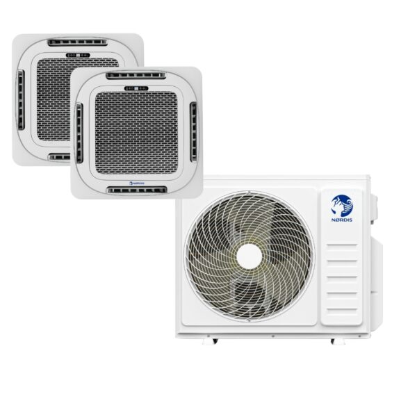 Kasetne klimatske naprave so sodobna rešitev za učinkovito in enakomerno hlajenje in ogrevanje prostorov. Te enote so združljive z zunanjimi enotami NØRDIS multi-split, kar zagotavlja največjo prilagodljivost in udobje v več prostorih hkrati. Kasetne klimatske naprave so idealna izbira za pisarne, hotele, restavracije in druge prostore, kjer je potrebna učinkovita, nevsiljiva in estetska distribucija zraka. Ne le, da ustvarjajo prijetno in udobno okolje, temveč tudi pomagajo varčevati z energijo in varovati okolje.